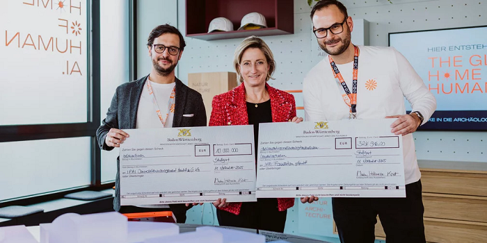Im Rahmen des zweiten IPAI Experience Day in Heilbronn übergibt Dr. Nicole Hoffmeister-Kraut, Ministerin für Wirtschaft, Arbeit und Tourismus, heute (11. November) zwei Förderbescheide in Höhe von insgesamt rund 10,3 Millionen Euro an Moritz Gräter (CEO IPAI) und Dr. Benjamin Schiller (CFO IPAI). Mit zehn Millionen Euro wird die Errichtung des Start-up Innovation Centers auf dem 30 Hektar großen künftigen IPAI CAMPUS gefördert. Mit rund 325.000 Euro wird darüber hinaus das Projekt „Women in AI“ unterstützt. Beide Förderungen sind Teil der 50 Millionen Euro, die das Land für die Realisierung des IPAI zur Verfügung stellt.